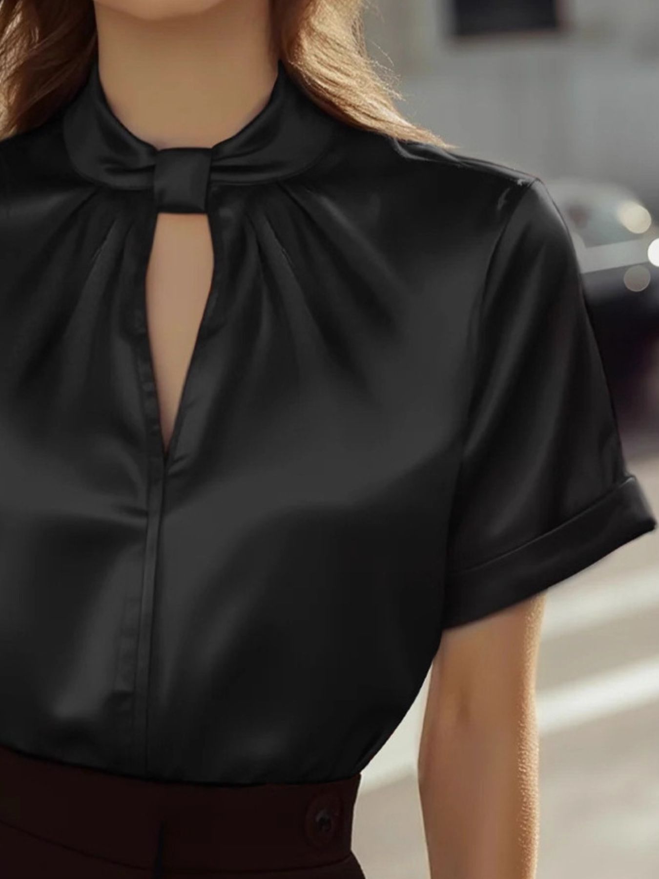 Keyhole Neck Satin Blouse